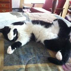 and Stella, we had Oreo. Oh my, what a big lover he was. He would snuggle up with me every night and curl himself into the curve of my body. He was big and he was rough and tumble